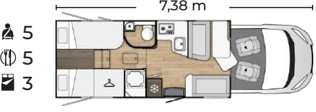 Gran salón face to face que deja mucho espacio en habitáculo gran garaje y cama gemelar